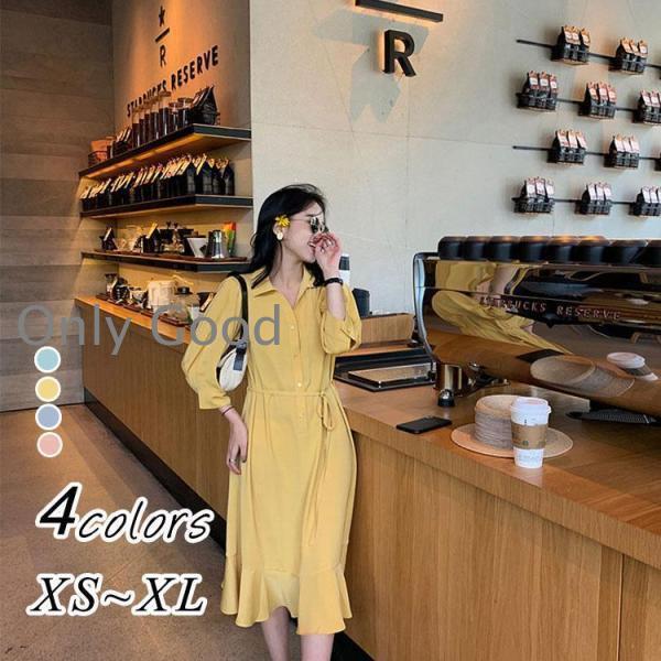 即納 ワンピース シャツワンピース レディース 長袖 秋 春 ロングワンピース 切り替え Aライン ・・・