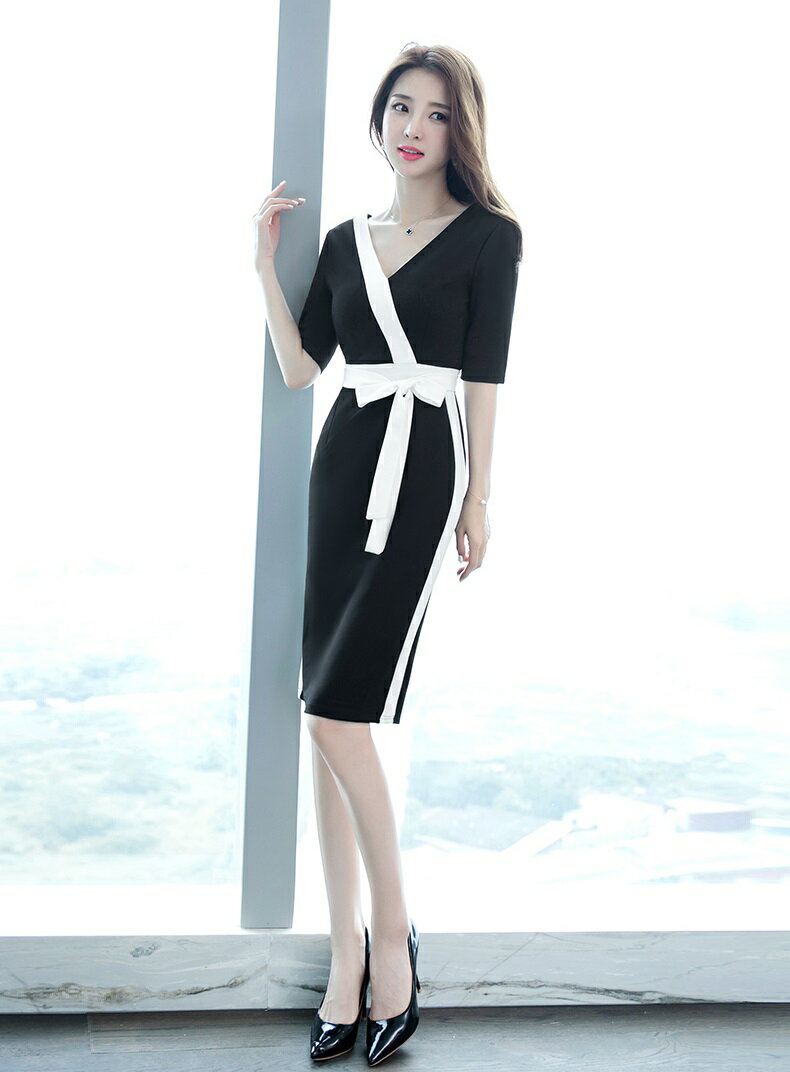 フェミニン ワンピース エレガント 優雅 タイトワンピース Vネック セクシー 黒 パーティードレス・・・