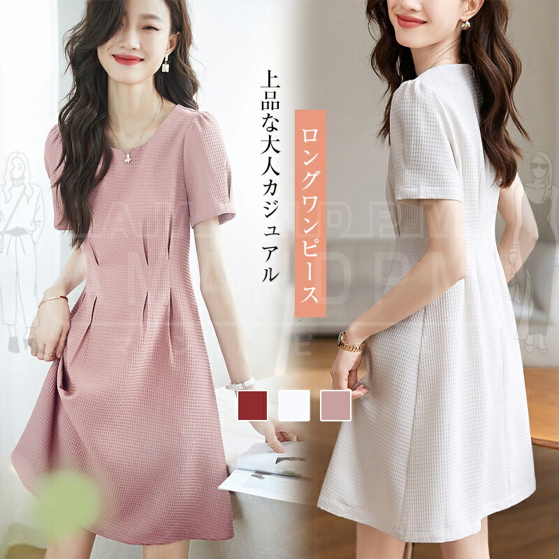 ワンピース レディース きれいめ 春 夏 秋 春夏 ロングワンピース らく フォマール 半袖 vネック ふんわり 膝丈 ロング