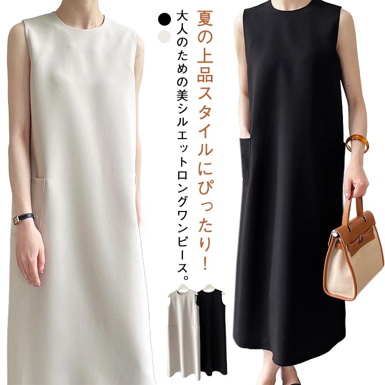 ワンピース ノースリーブ Iライン ロング丈 きれいめ ドレス マキシ丈ワンピース お洒落 キレイめ