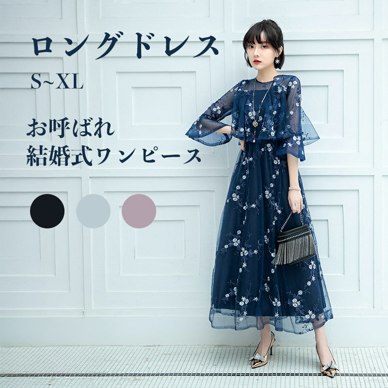 結婚式 パーティードレス ドレス ワンピース 低身長 150cm ミセス 即日発送 着痩せ おしゃれ 披露宴 謝恩会 演奏会 同窓会 発表会 女子会 ロング丈 マキシ フレア クラシカル 華やか no_c