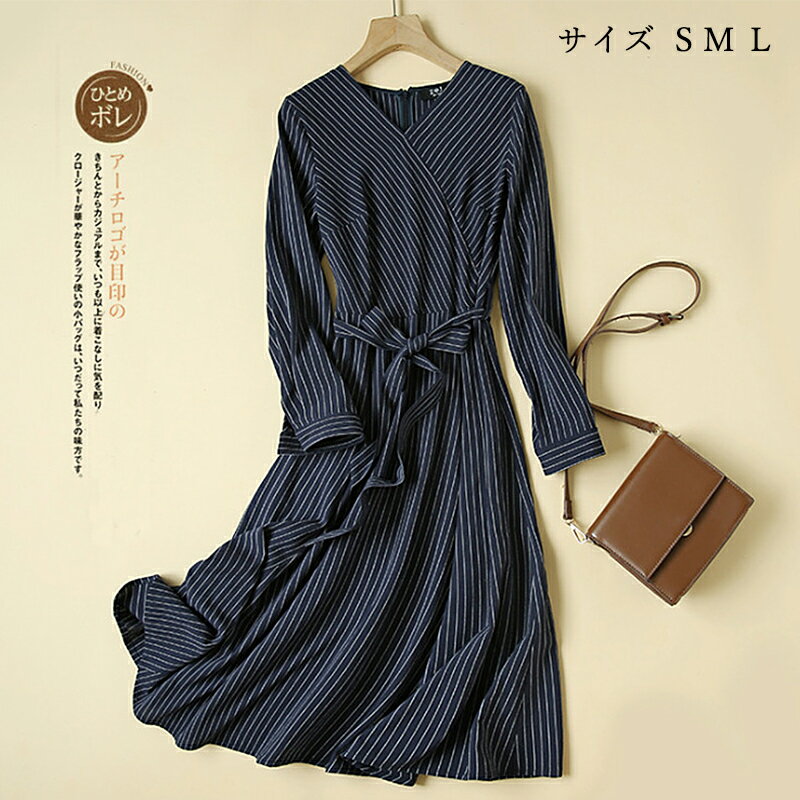 ワンピース レディース 長袖 おしゃれ 上品 縞柄 ドレス 無地 スカート シンプル 30代 40代・・・