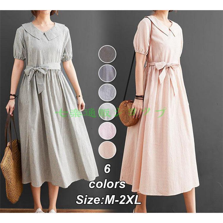 【楽天スーパーセール】シャツワンピース レディース 半袖 夏 ロング丈 チェック柄 体型カバー 通勤・・・