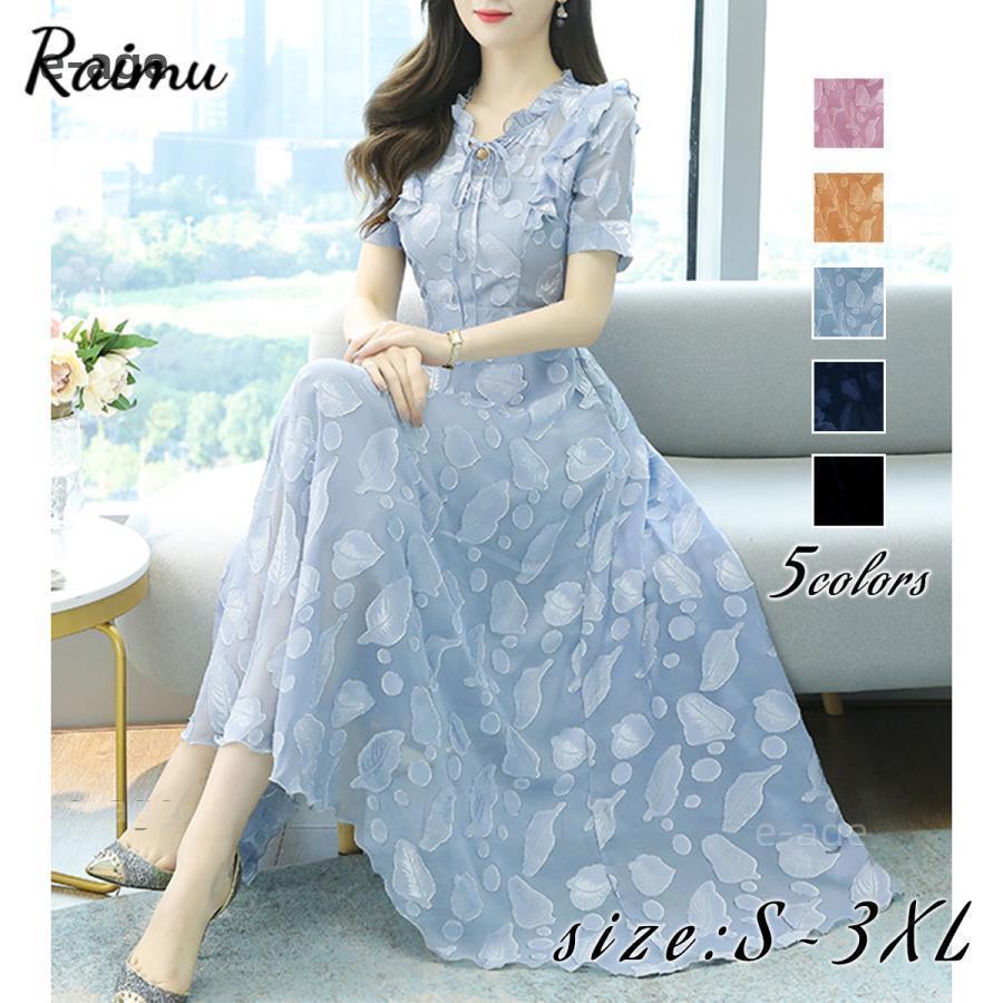 ワンピース レディース フェミニン エレガント 優雅 きれいめ 春夏 マキシワンピース 30代 40代 50代 フォーマル 通勤 OL ミディアムワンピース オフィス 事務服 半袖ワンピース ママ