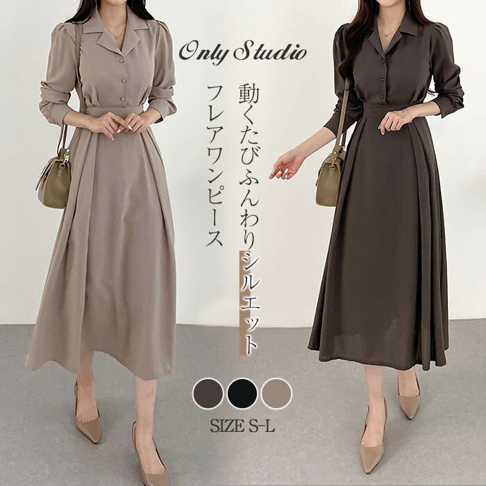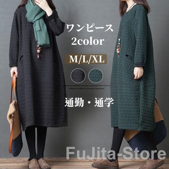 【送料無料◎宅配便発送】ワンピース レディース ロング ワンピース ワンピ 長袖 ロング ワンピ 体型カバー ゆったり シンプル ロングワンピ かわいい 春 秋 冬 着痩せ ハイウエスト