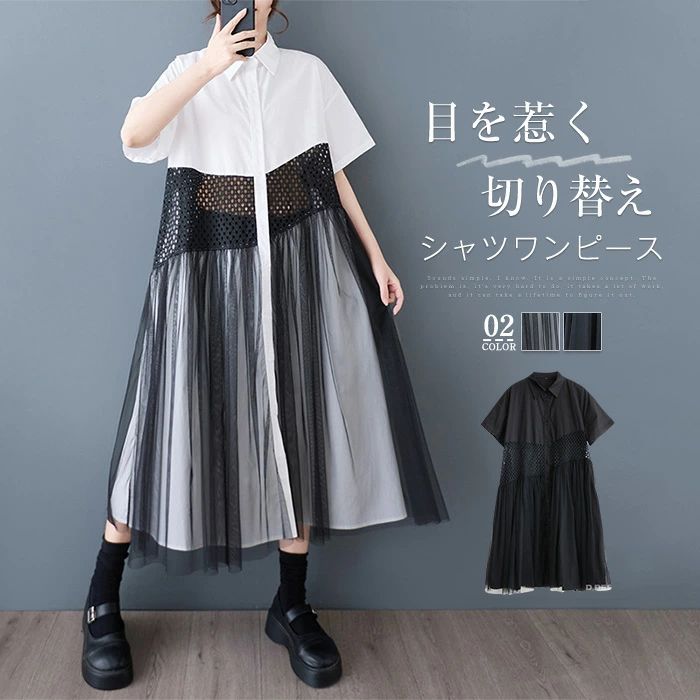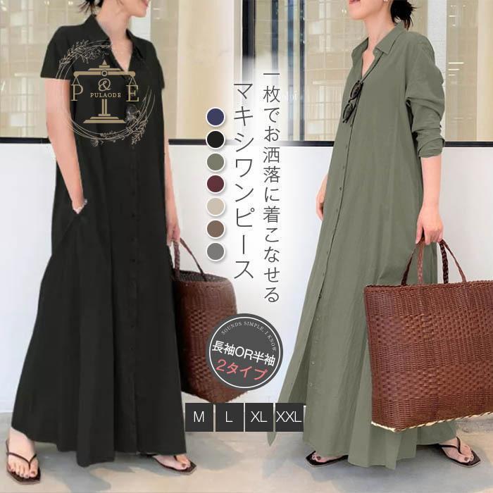 シャツワンピース レディース 春 長袖 半袖 ワンピース 40代 マキシ丈 春夏 きれいめ 体型カバ・・・