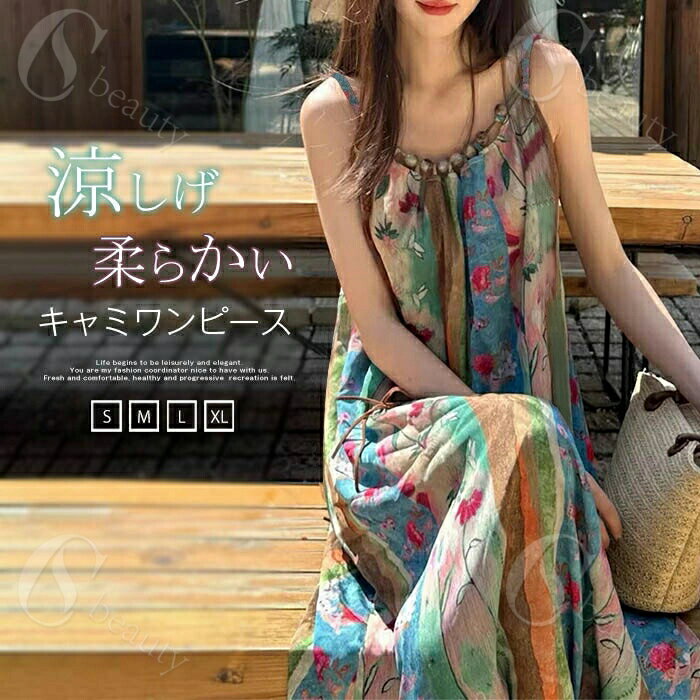 ★ 送料無料 ★ワンピース キャミソールワンピース マキシワンピース レディース 夏 ノースリーブ ロングワンピース 総柄 フレア 秋 春 ワンピ
