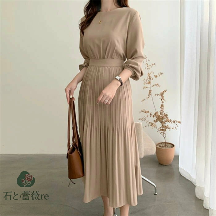 【送料無料◎宅配便発送】プリーツワンピース ワンピース 長袖