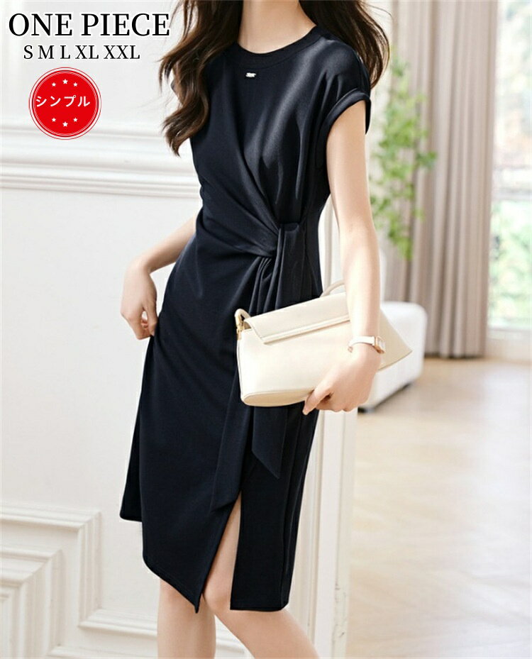 夏ワンピース パーティドレス レディース きれいめ 40代50代 半袖ワンピース 着痩せ 無地 気質・・・