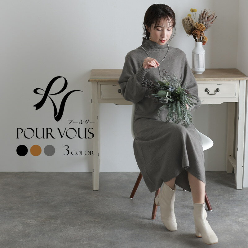 モックネック セーター チュニック モックネック ニットワンピース ワンピース プルオーバー ロング・・・