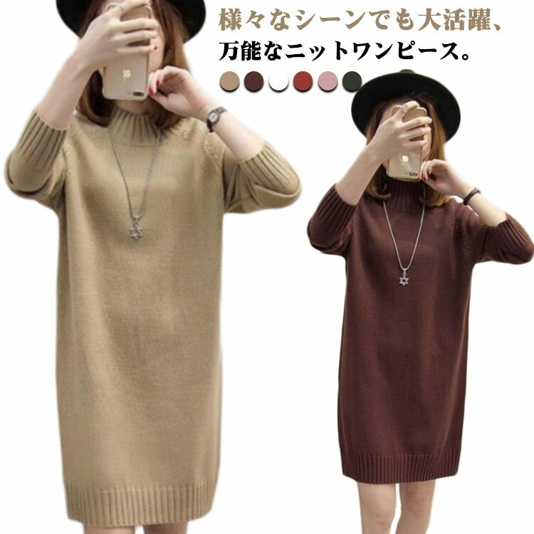 送料無料 ニットワンピース レディース モックネック チュニック 長袖 ロング丈 セーター ニットトップス 膝丈 カジュアル おしゃれ 20代 30代 40代 50代