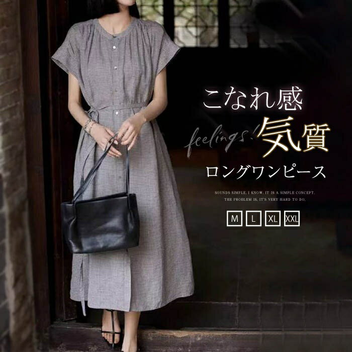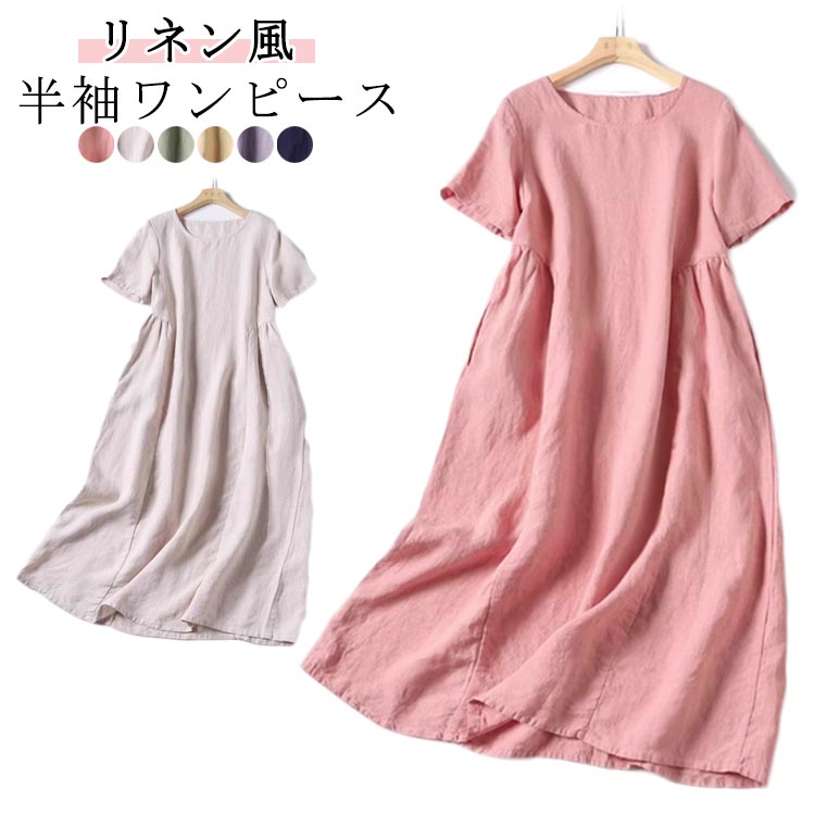 半袖 ワンピース 夏 きれいめ ロング レディース Aライン リネン風 体型カバー マキシ丈ワンピース きれいめ 50代 40代 30代 お洒落 可愛い 無地 シンプル