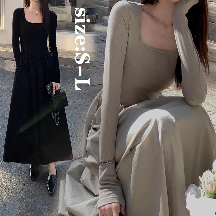 マキシワンピース レディース 長袖 タイトワンピース おしゃれ Aラインワンピース きれいめ ロング丈ワンピース シャツワンピース 韓国風 通勤 OL 春秋 無地 40代 30代 50代 着痩せ