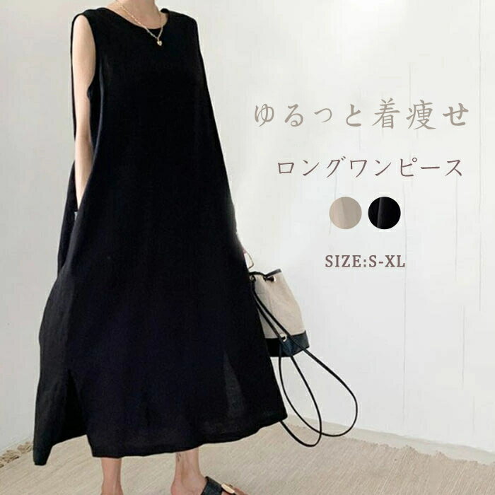 ★ 送料無料 ★ ワンピース マキシワンピース レディース 夏 ノースリーブ ロングワンピース ゆったり シンプル 無地 春 ワンピ 体型カバー 着痩せ ロング きれいめ