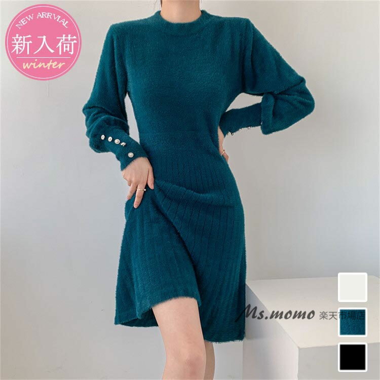 ワンピース 秋冬 きれい め 長袖 ニット フロント タイト 膝丈 黒 インナー カジュアル 秋 大・・・