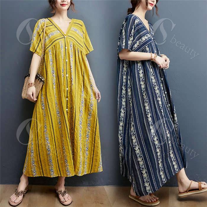 暑い季節に一枚で着られるマキシ丈ワンピース!ワンピース 半袖 エスニック風 きれいめ 夏 ロングワンピー