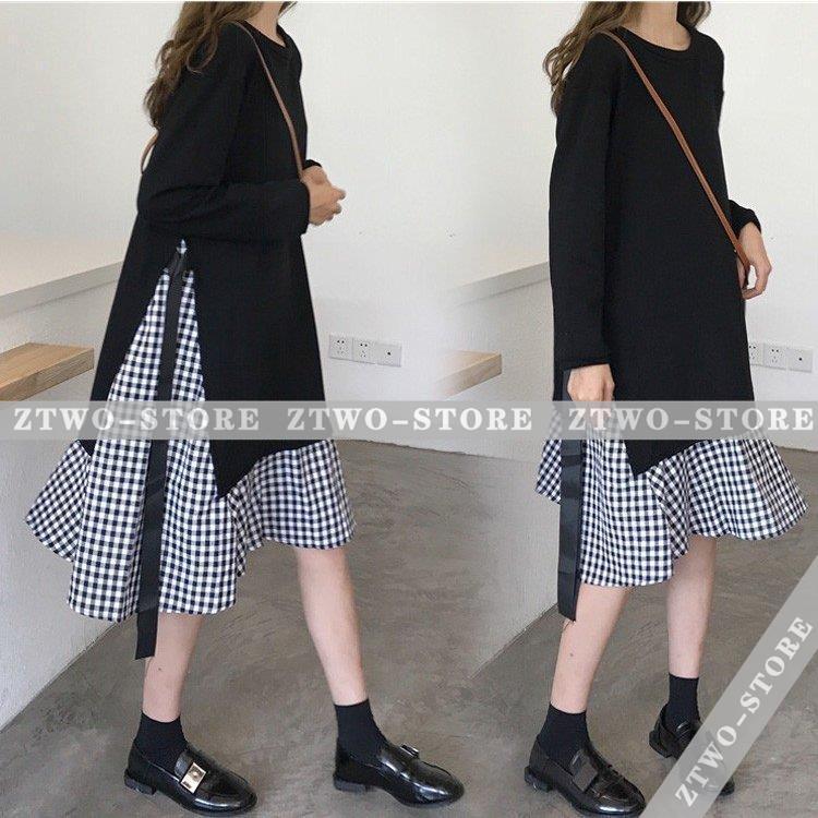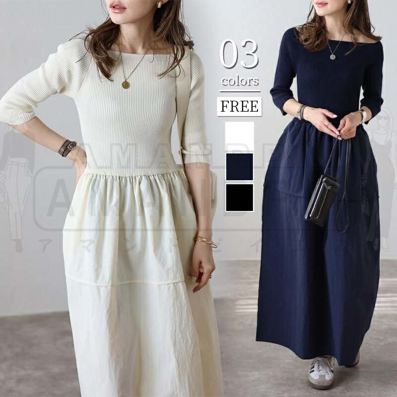 ワンピース レディース きれいめ カジュアル 韓国 春 秋 冬 秋冬 ロング インナー ニット 切り替えワンピース ボートネック
