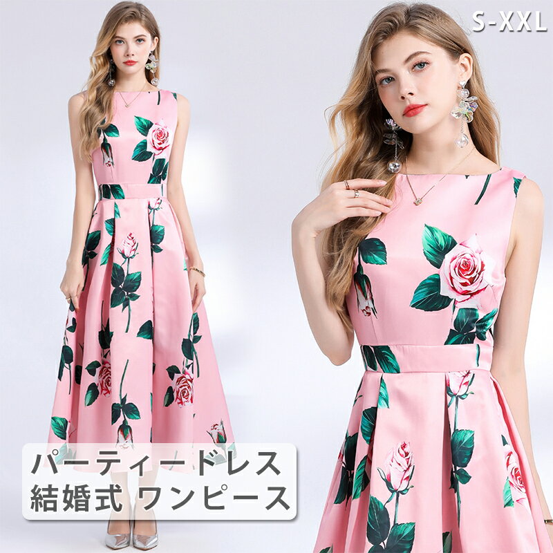 パーティードレス 結婚式 ワンピース フォーマルドレス 花柄 プリント お呼ばれ ドレス フォーマル・・・