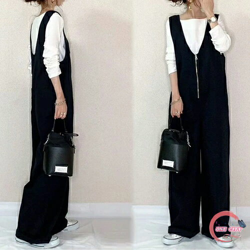 サロペット レディース ワイドパンツ サロペ Vネック オールインワン 体型カバー 大きいサイズ ワンピース パンツ ワンピ 夏 春 シンプル 通勤 着痩せ きれい