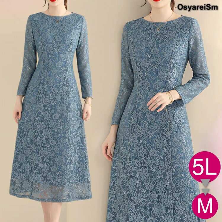 総レース ブラック マザードレス フォーマル ワンピース シニア 膝下 パーティドレス ll 2l 発表会 演奏会 衣装 服 おしゃれ お呼ばれ 二次会 セレモニー 袖付き 袖レース エレガント
