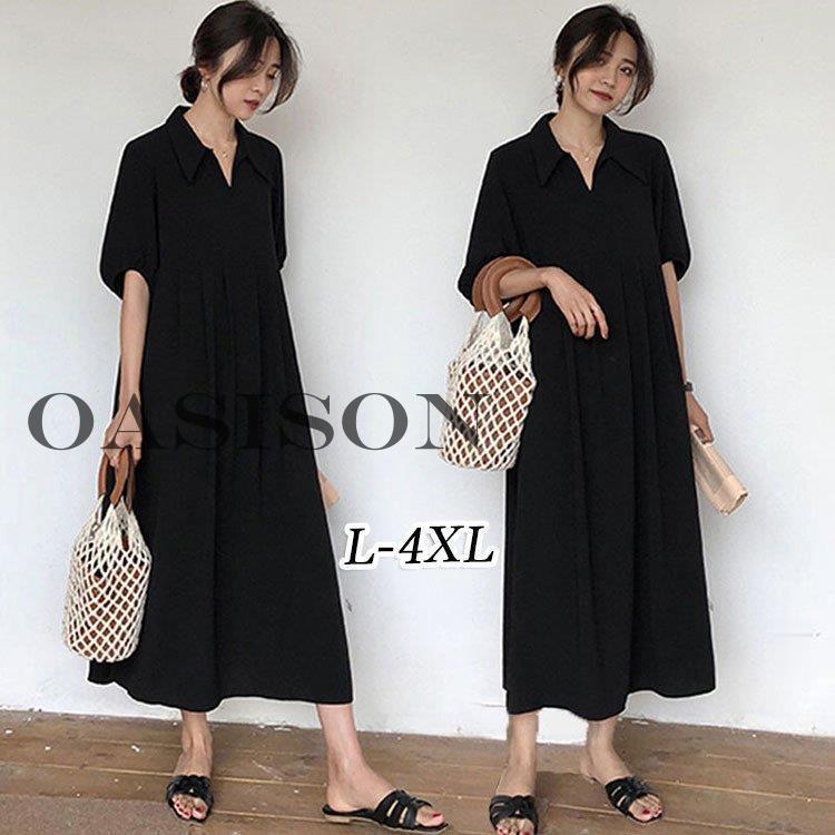 ワンピース レディース 50代 夏 40代 ロングワンピース 無地 ワンピース きれいめ 体型カバー・・・