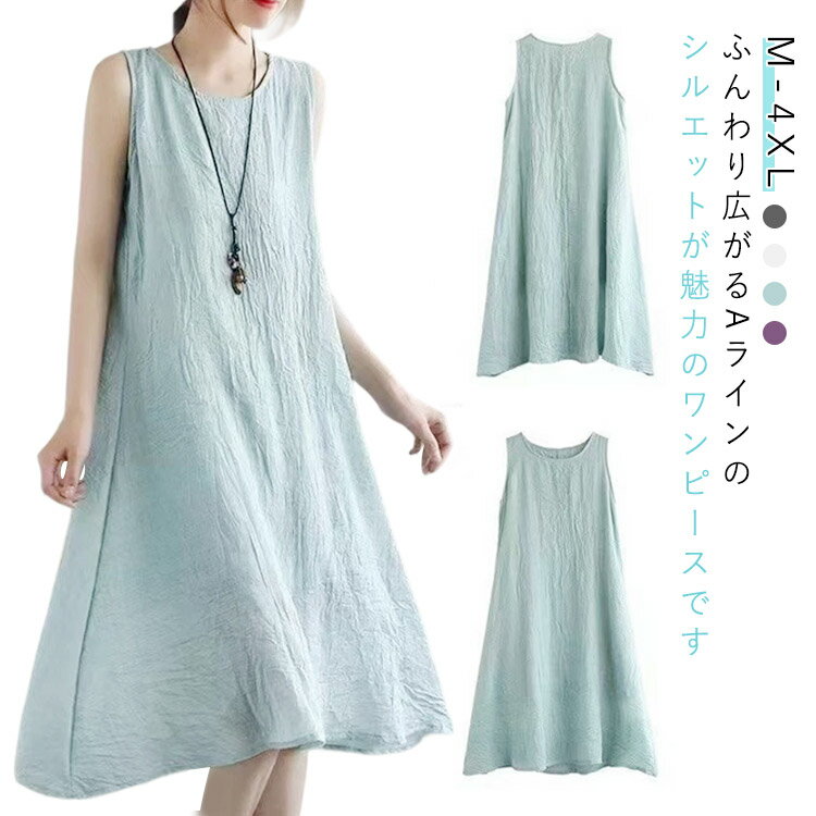 ノースリーブ 薄手 ワンピース シンプル 涼しい レディース フェミニン ナチュラル ロングワンピー・・・