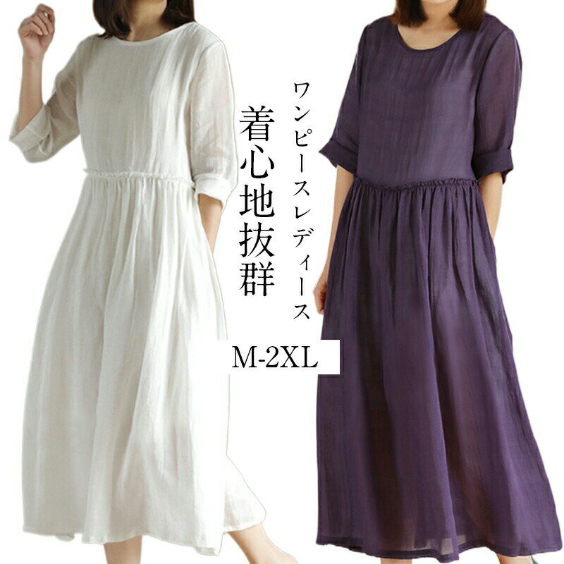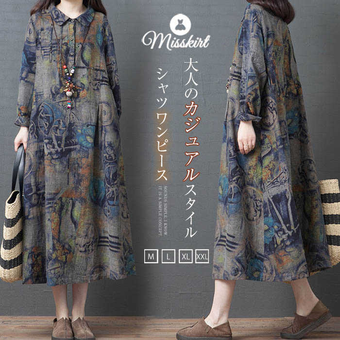 ワンピース レディース 春 秋 ロングワンピース 長袖 体型カバー 大きいサイズ ゆったり 着痩せ ・・・