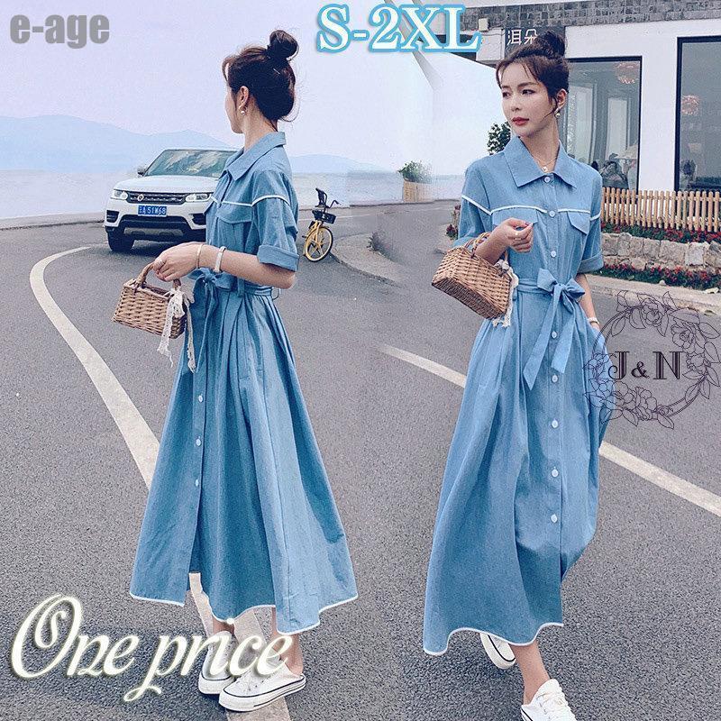 ★ 送料無料 ★ ワンピース デニムワンピース マキシワンピース レディース 春 秋 長袖 デニム シャツワンピース Aライン ラップ 折り襟 ワンピース
