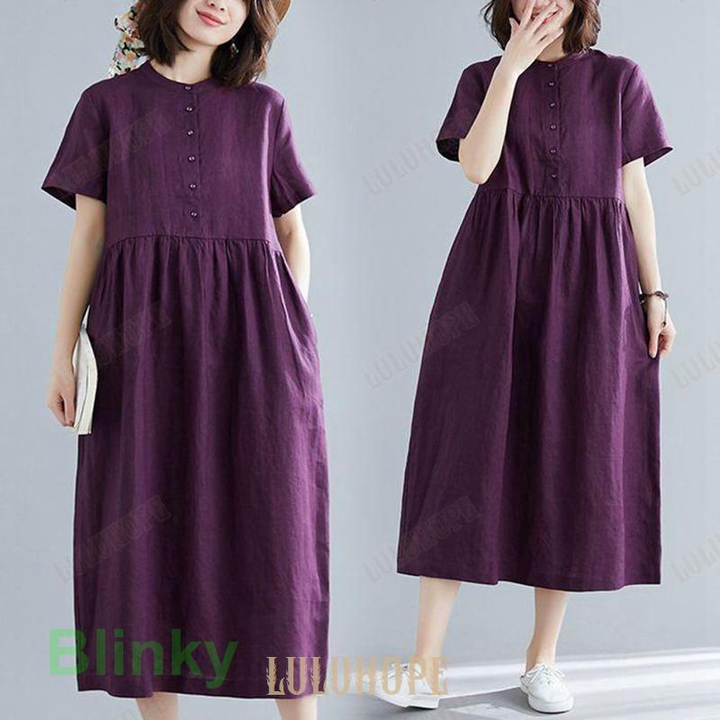 ロングシャツワンピース 綿麻混 無地 マキシワンピ 大きいサイズ レディース 半袖 体型カバー 着痩・・・