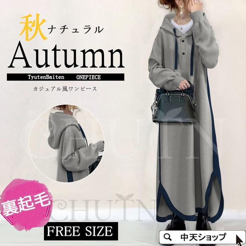 秋 パーカーワンピース ロングワンピース レディース 50代 40代 春 長袖ワンピース 秋冬 着痩・・・