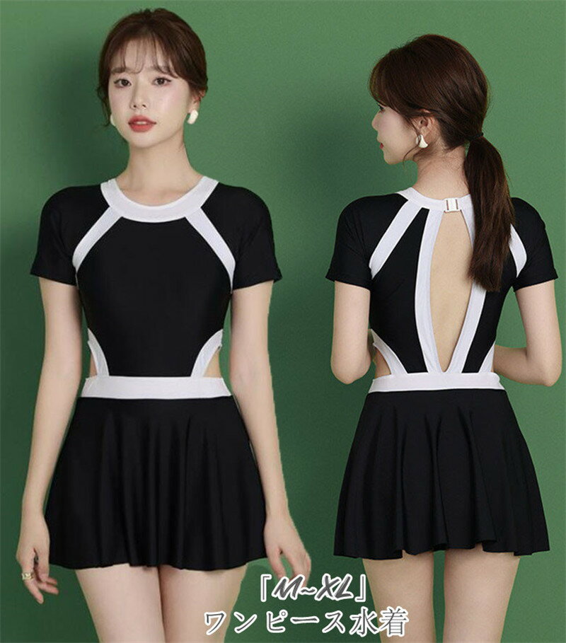ワンピース水着 レディース 体型カバー水着 「M~XL」透け感 半袖 小胸バンドゥ 30代 20代 40代 50代 オシャレ 着痩せ スイムウェア ママ 人気新作 エレガント キレイめ 韓国風