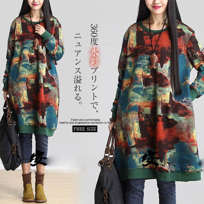 チュニック ワンピース レディース 秋冬 春秋 冬 パーカー スウェットワンピース 膝丈 総柄 長袖・・・