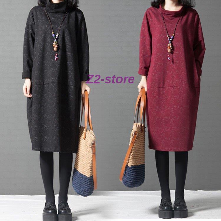 ワンピース レディース 秋ワンピース 膝丈ワンピース ミディアム丈 ゆったり ハイネック 着痩せ 3・・・