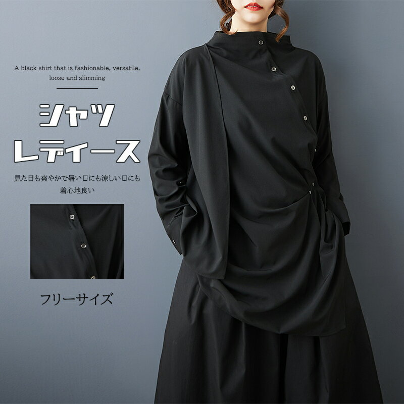 シャツ レディース ブラウス トップス きれいめ チュニック アシンメトリー アシメ長袖 体型カバー・・・