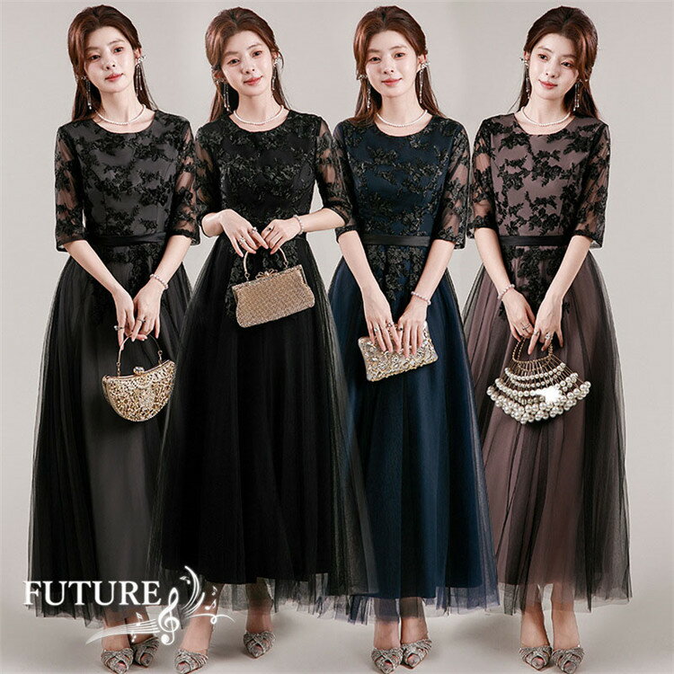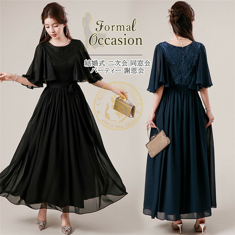 ドレス マキシ丈 ワンピース パーティードレス 2次会 フォーマル カジュアル 披露宴 呼ばれ 謝恩会 発表会 演奏会 同窓会 30代 40代 50代 着痩せ ジュニア