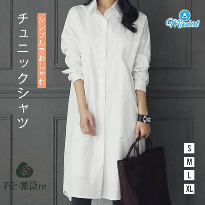 シャツワンピース チュニック ワンピース シャツ ワンピース レディース ワンピ 膝丈 ミディアム丈・・・