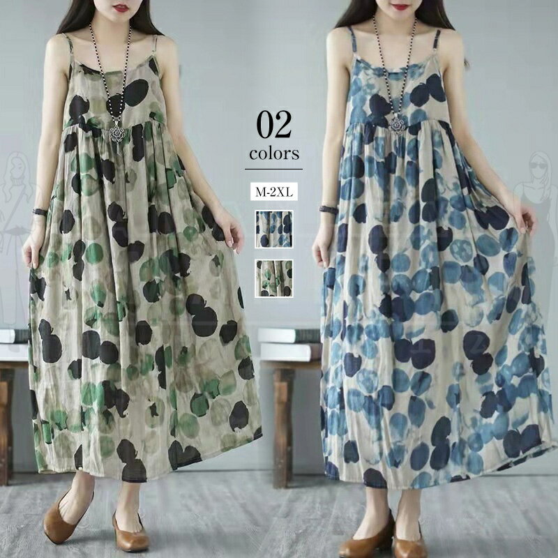 ワンピース レディース きれいめ 春 夏 ロングワンピース キャミソール ノースリーブ ドット 花柄 総柄 ロング 膝丈 フレア