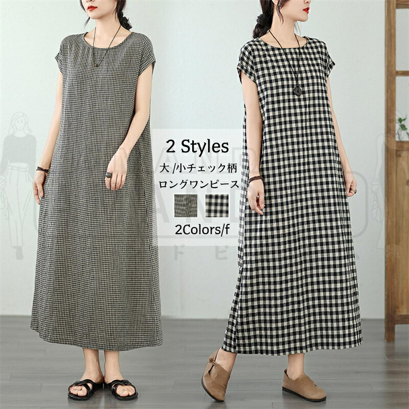 ロングワンピース 秋冬 長袖 レディース きれいめ 大きいサイズ 秋 冬 ロング丈 ワンピース 綿 コットン 体型カバー ロングワンピ チェック柄 ミモレ ゆったり