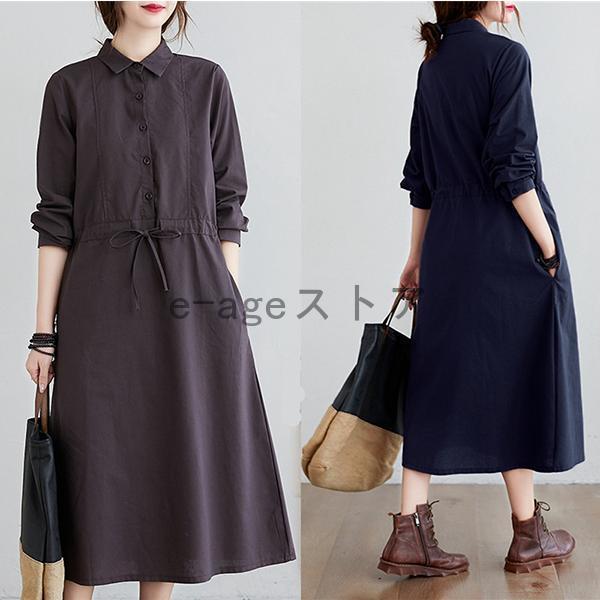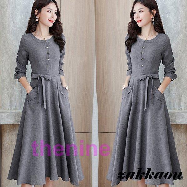 ワンピース レディース 秋 冬 40代 50代 きれいめ 長袖 マキシワンピース 綿麻 ロング丈 上・・・