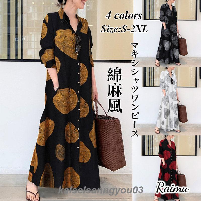 ワンピース ロングワンピース レデイーズ 40代 きれいめ 長袖 マキシ丈 シャツワンピース 春 夏・・・