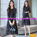 ワンピース レディース 40代 シフォンワンピース 春秋新作 長袖ワンピース 膝丈ワンピース 花柄a・・・