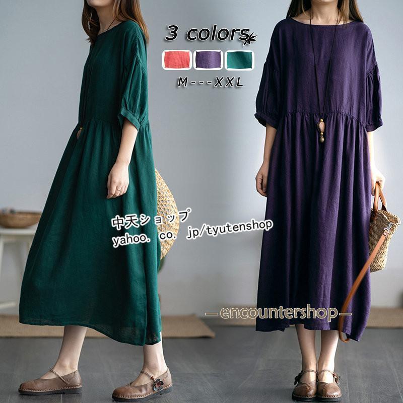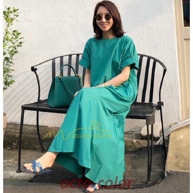 ワンピース レディース 半袖 ゆったり 春秋 夏 ワンピ ロングワンピース ロング シンプル 無地 着痩せ きれいめ マキシ丈ワンピース 20代 30代 40代 50代