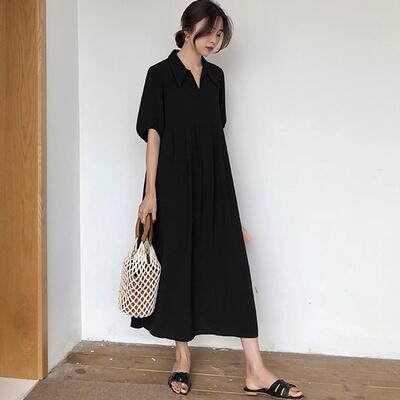 シャツワンピース切り替えレディース着痩せ無地オシャレオフィスゆったり体型カバーロングシャツ通勤食事会カジュアル大人レトロ20代30代40代50代ブラック