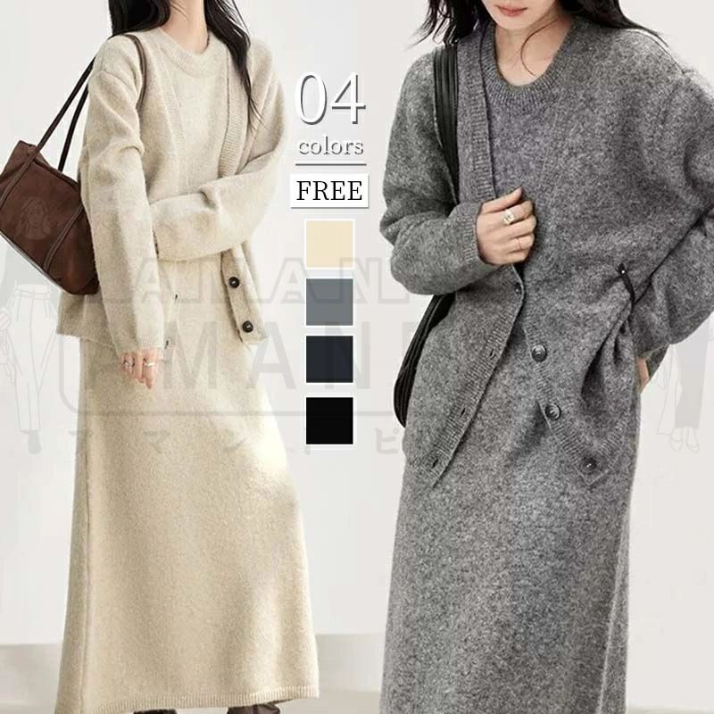 セットアップ レディース 秋 冬 秋冬 きれいめ カジュアル 韓国 ワンピースセット ワンピース ロ・・・
