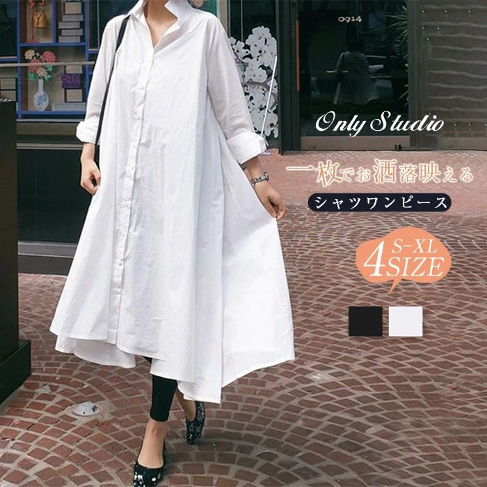 ワンピース ロングワンピース シャツワンピ レディース ロング丈 マキシ丈 ゆるっとワンピース 長袖・・・