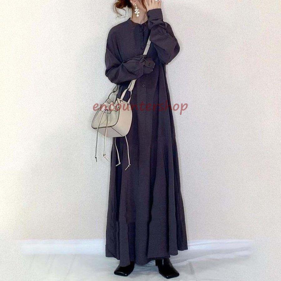 きれいめ 大人 長袖 膝下 秋 マキシ丈ワンピース 30代40代50代