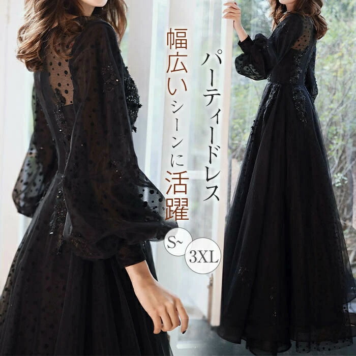 ドレス 結婚式 フォーマル パーティードレス 長袖 秋冬 大きいサイズ ロング マキシ 刺繍 着痩せ・・・