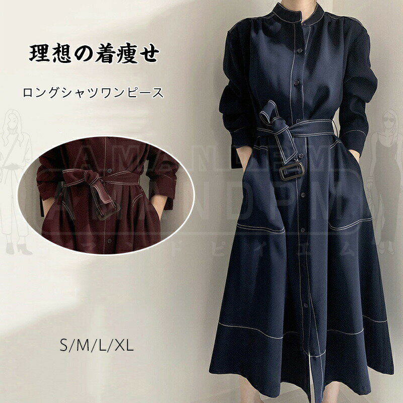 ロングワンピース レディース長袖 膝丈 シャツワンピース Aライン春夏ワンピース 呼ばれ 着痩せ30代40代50代