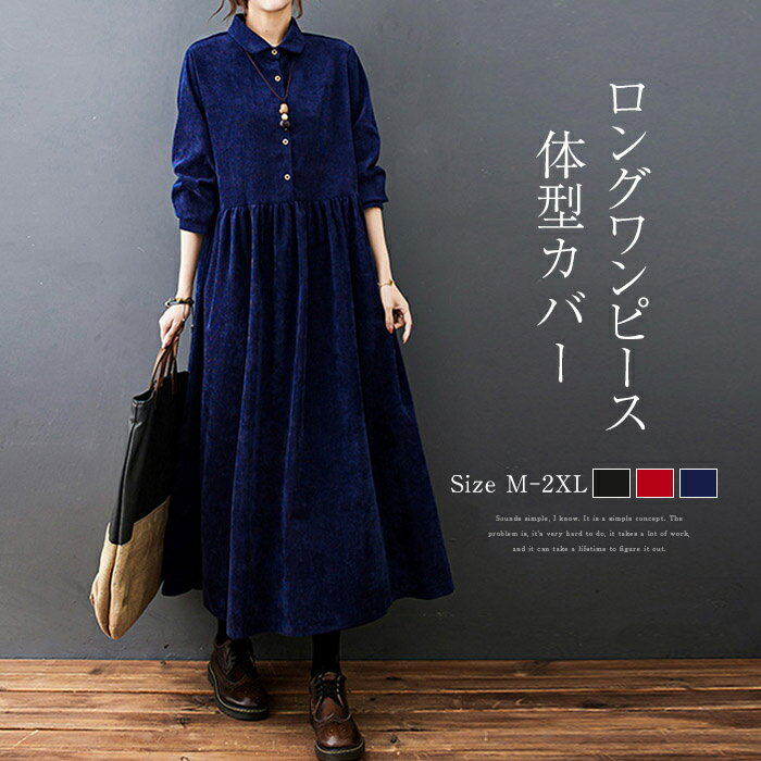 シンプル 可愛い ロングワンピ ゆったり 体型カバー