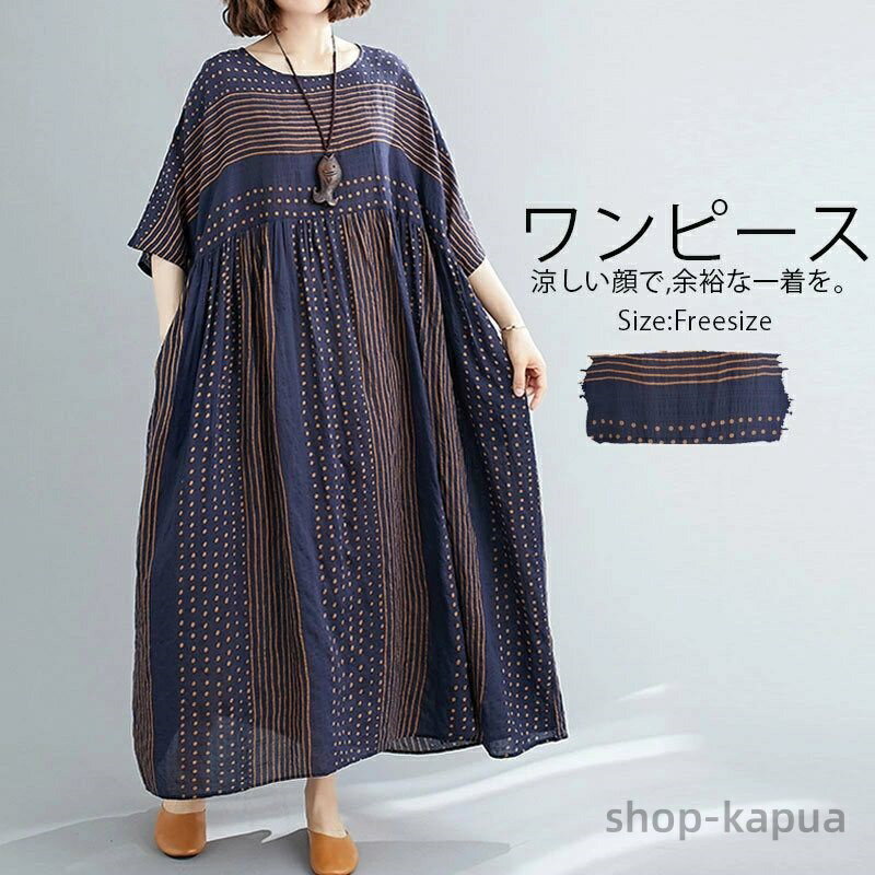 ワンピース レディース 夏 半袖 ロングワンピース 20代30代40代50代 ゆったり 体型カバー ・・・